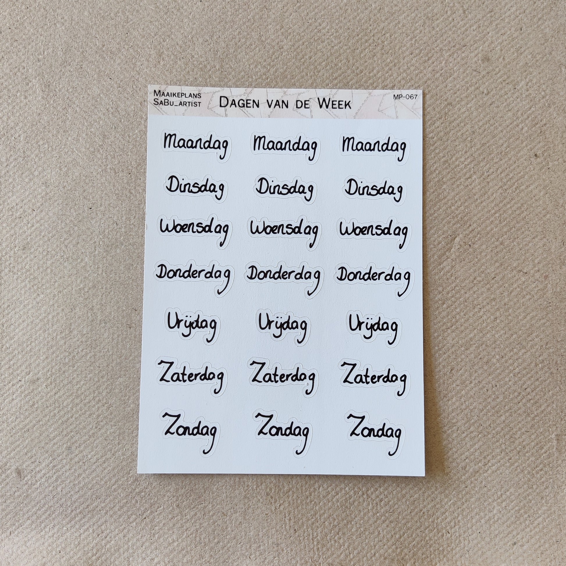 This sticker sheet contains stickers with the days of the week. Perfect for creating your own planner or journal.