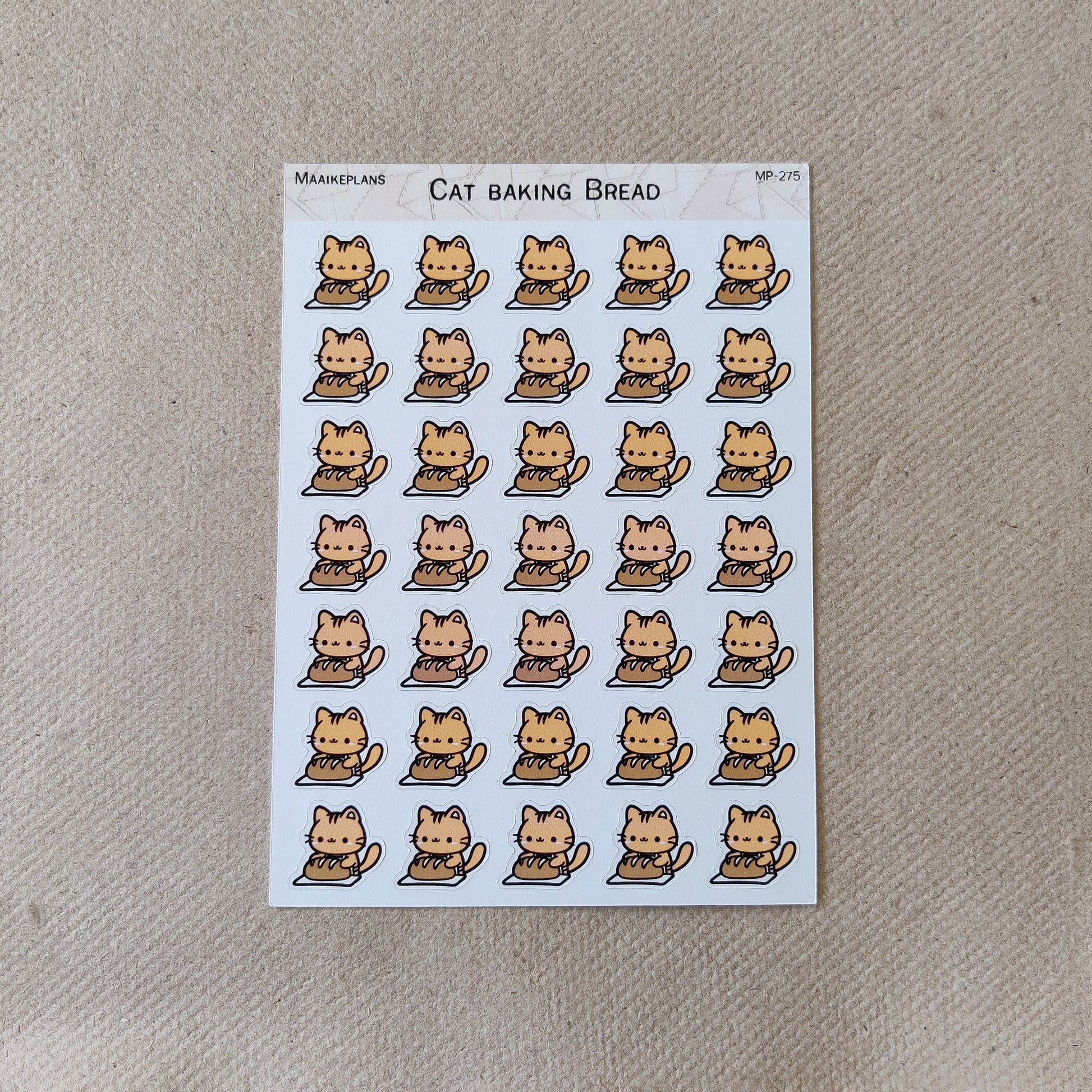 This sticker sheet contains small icon stickers of a cat baking bread.