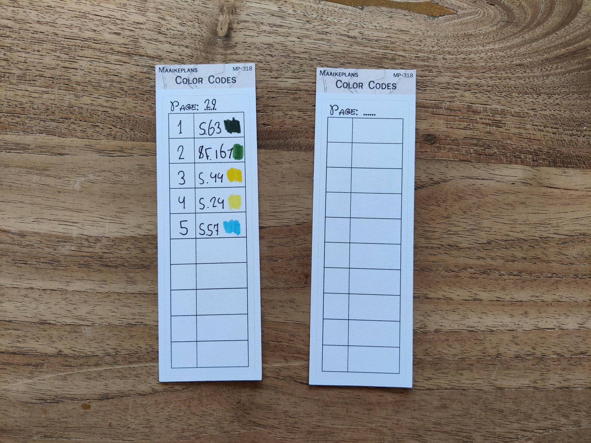 Je kunt kiezen uit twee variaties, met of zonder paginanummer. Ook handig als je meer dan tien kleuren nodig hebt, je kunt ze dan combineren.