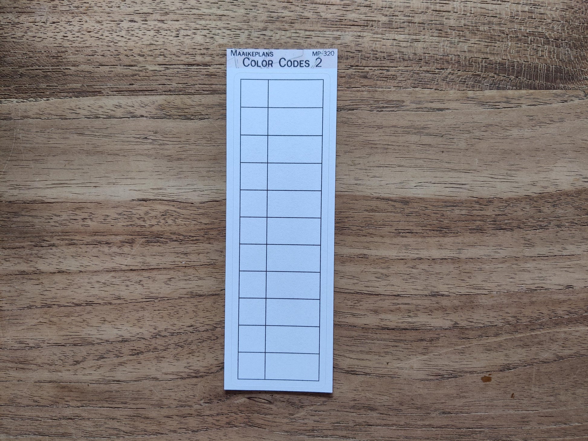 Bovenaan kun je ook nog noteren om welke pagina het gaat. Plak de sticker in een schrift om altijd terug te kunnen vinden welke stiften je hebt gebruikt. De sticker is 3,5 cm breed en 11 cm hoog.