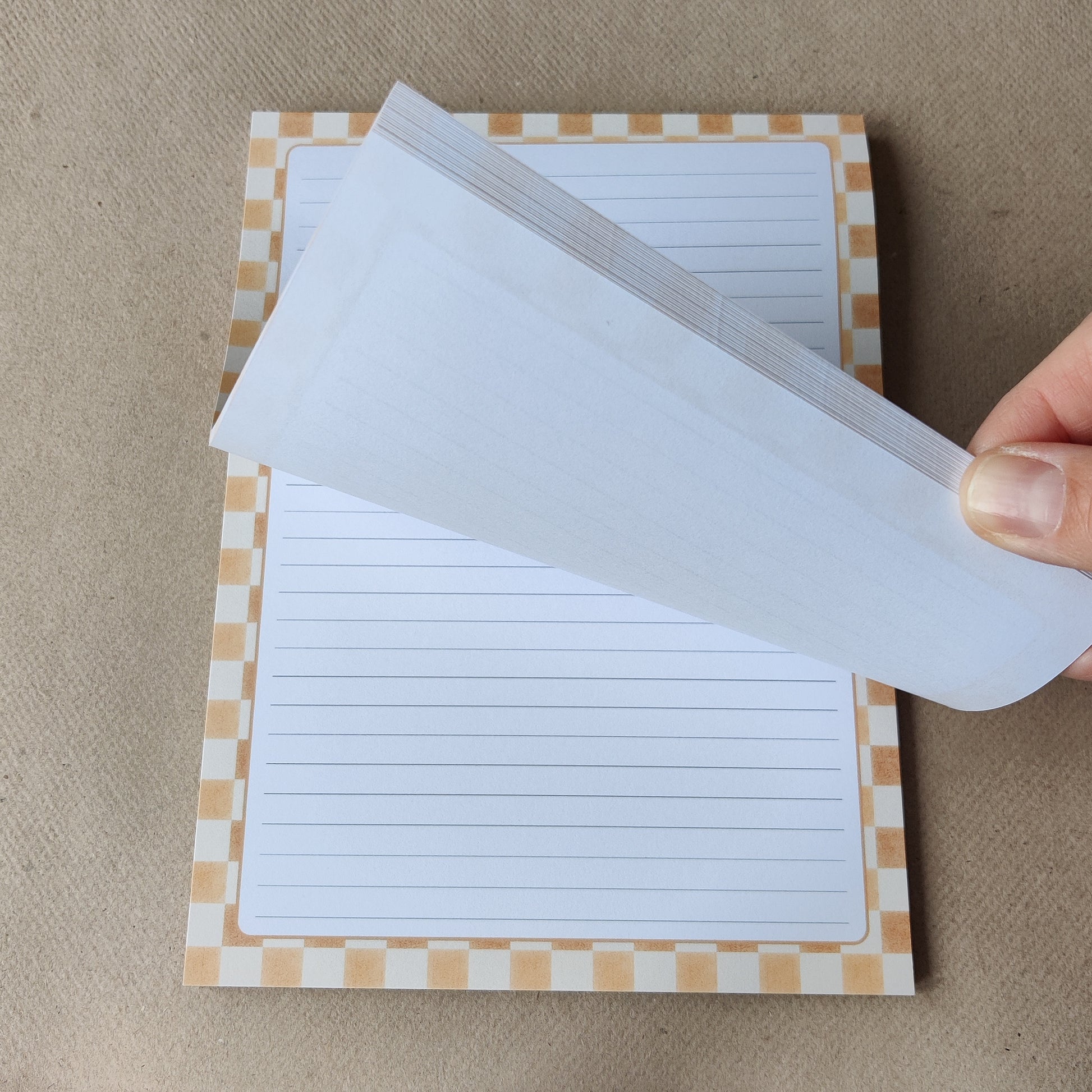 Gelinieerd notitieblok in een gele ruit print.