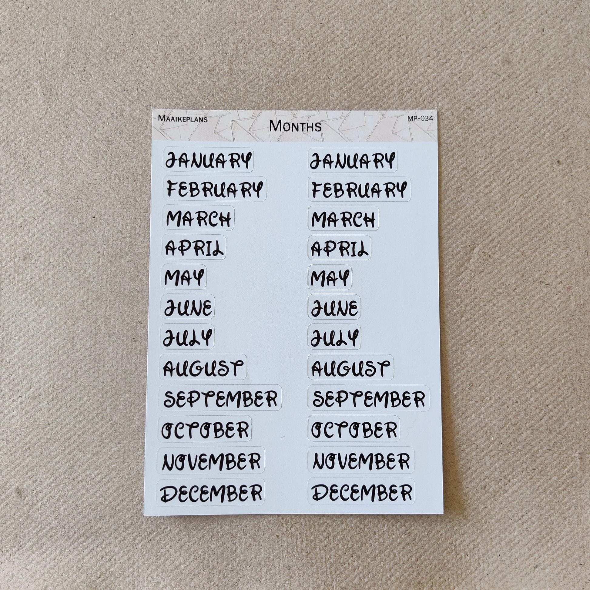 Dit stickervel bevat stickers met de maanden van het jaar. Ideaal voor als je je eigen agenda of journal maakt.